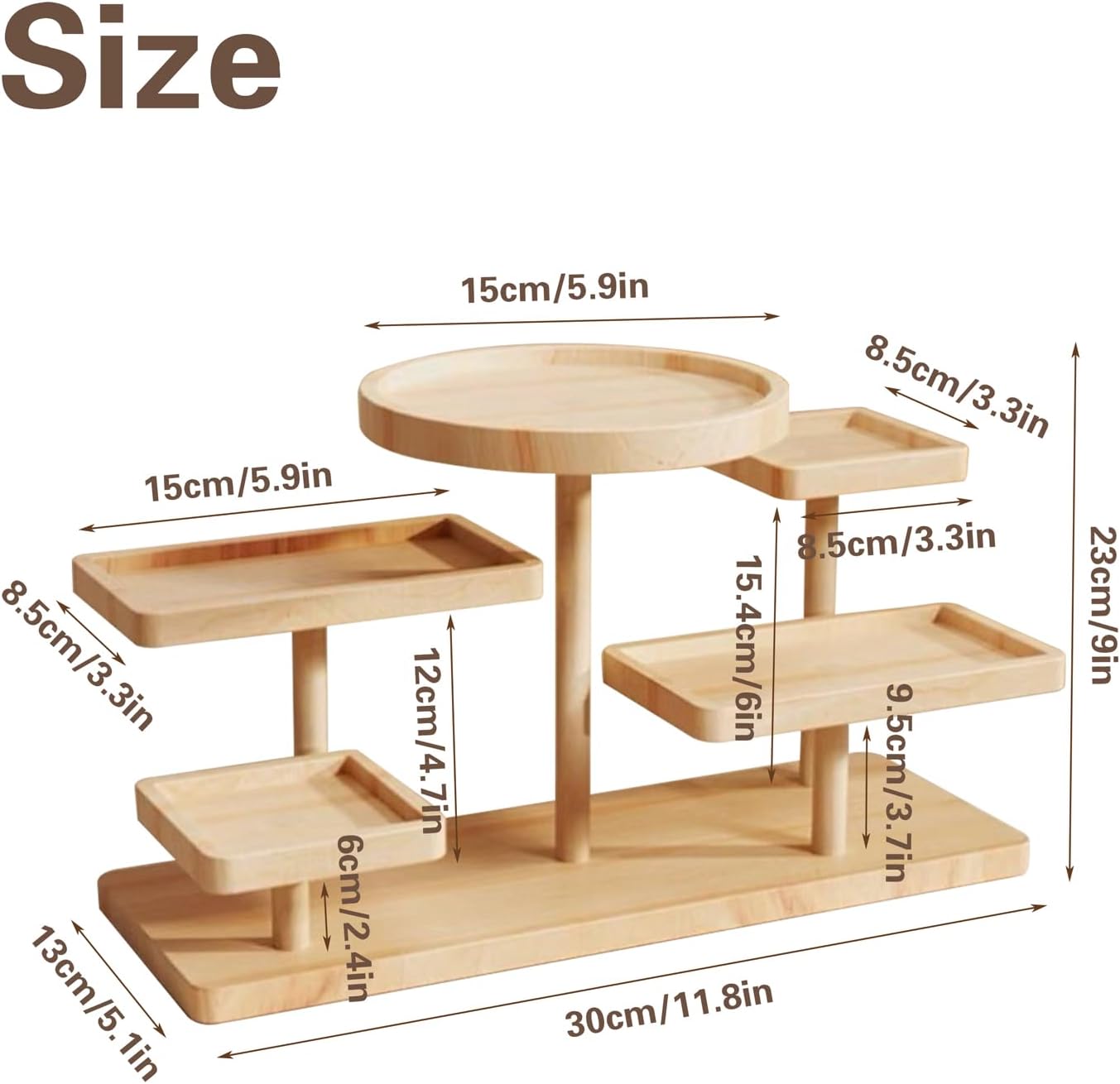 Multiple Sizes: The cake display stand consists of a 5.9-inch diameter round cake stand, two 3.35-inch square display stands and two 5.9 x 3.35-inch rectangular cake stands. The overall size is 11.81 x 5.12 x 9 inches to maximize the use of table space