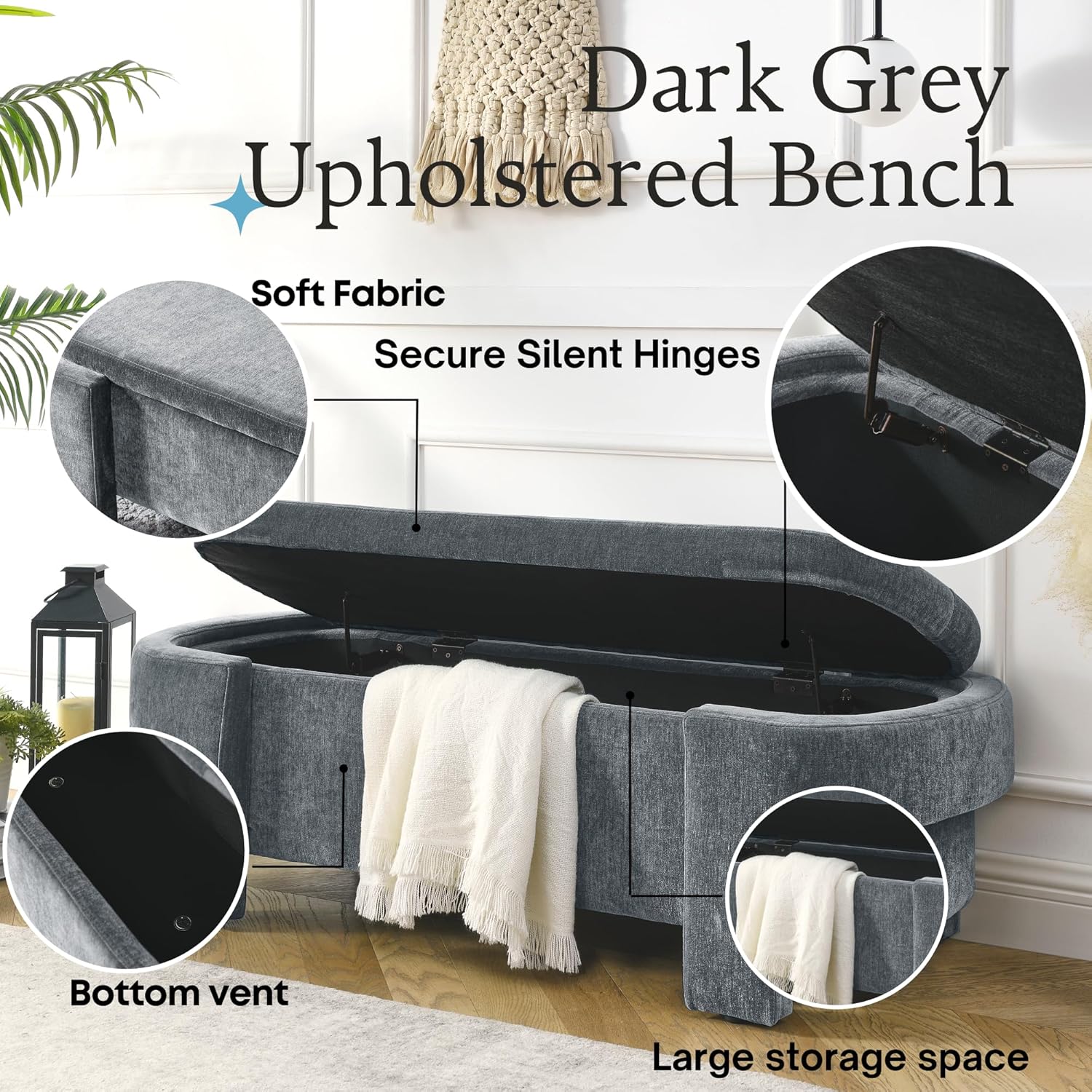 8 reviews for 51.5″ Large Oval Storage Bench, End of Bed Storage Ottoman, Linen Fabric Oversized Ottoman Bench with Storage for Living Room Entryway Bedroom Hallway Window Seating No Assembly Needed