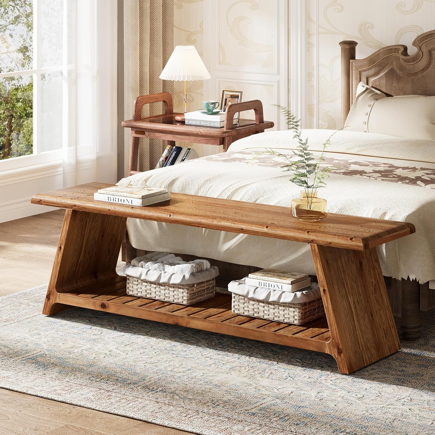 Timeless Design & Style Fusion: This entry bench features a simple, classic design that elevates the decor. The clean lines and natural wood grains blend well with farmhouse, modern, or rustic interiors, adding beauty and practical appeal to your home