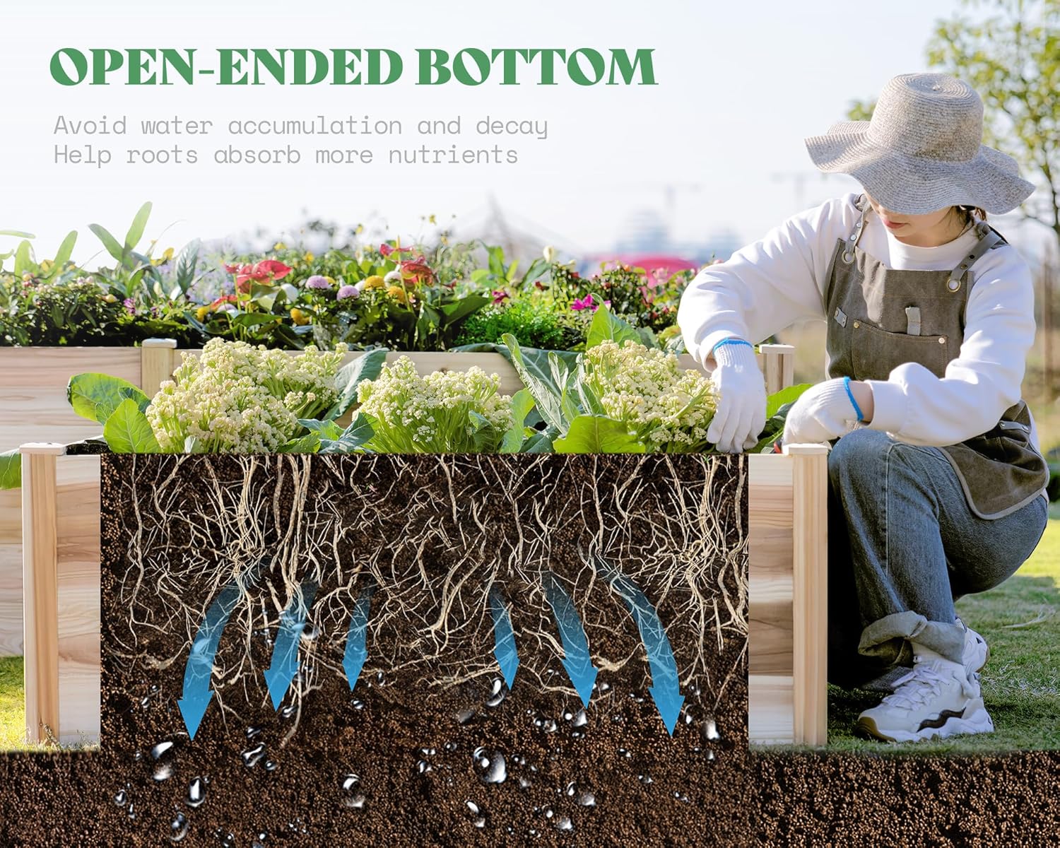 Two Planting Depths-Equipped with both shallow and deep sections, it accommodates a wide variety of plants, from herbs and flowers to vegetables with deeper root systems