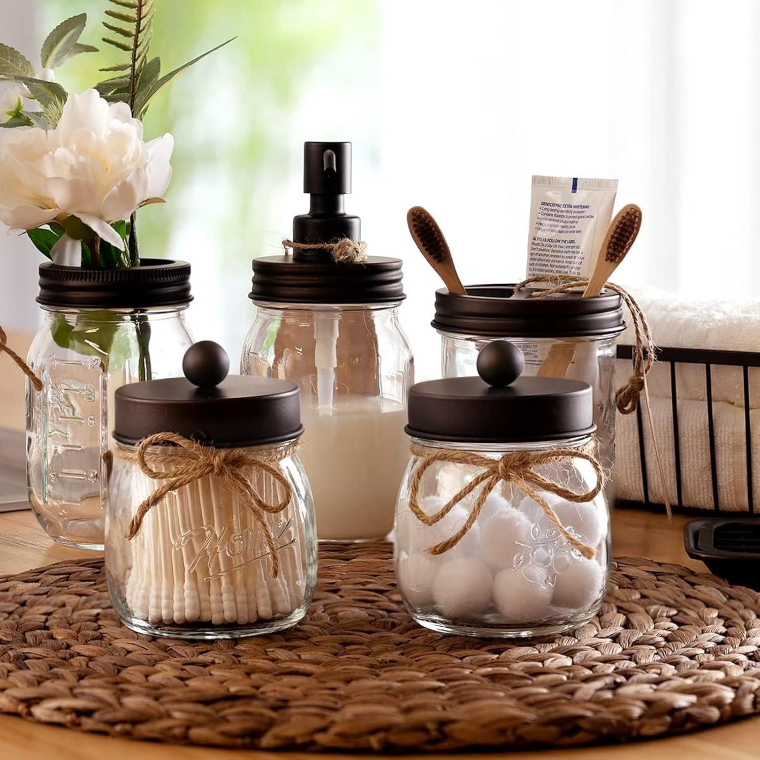 ALL-IN-ONE COMPLETE SET-Amolliar Mason Jar Bathroom Accessories Set-Rustic Farmhouse Decor for Home / Bathroom