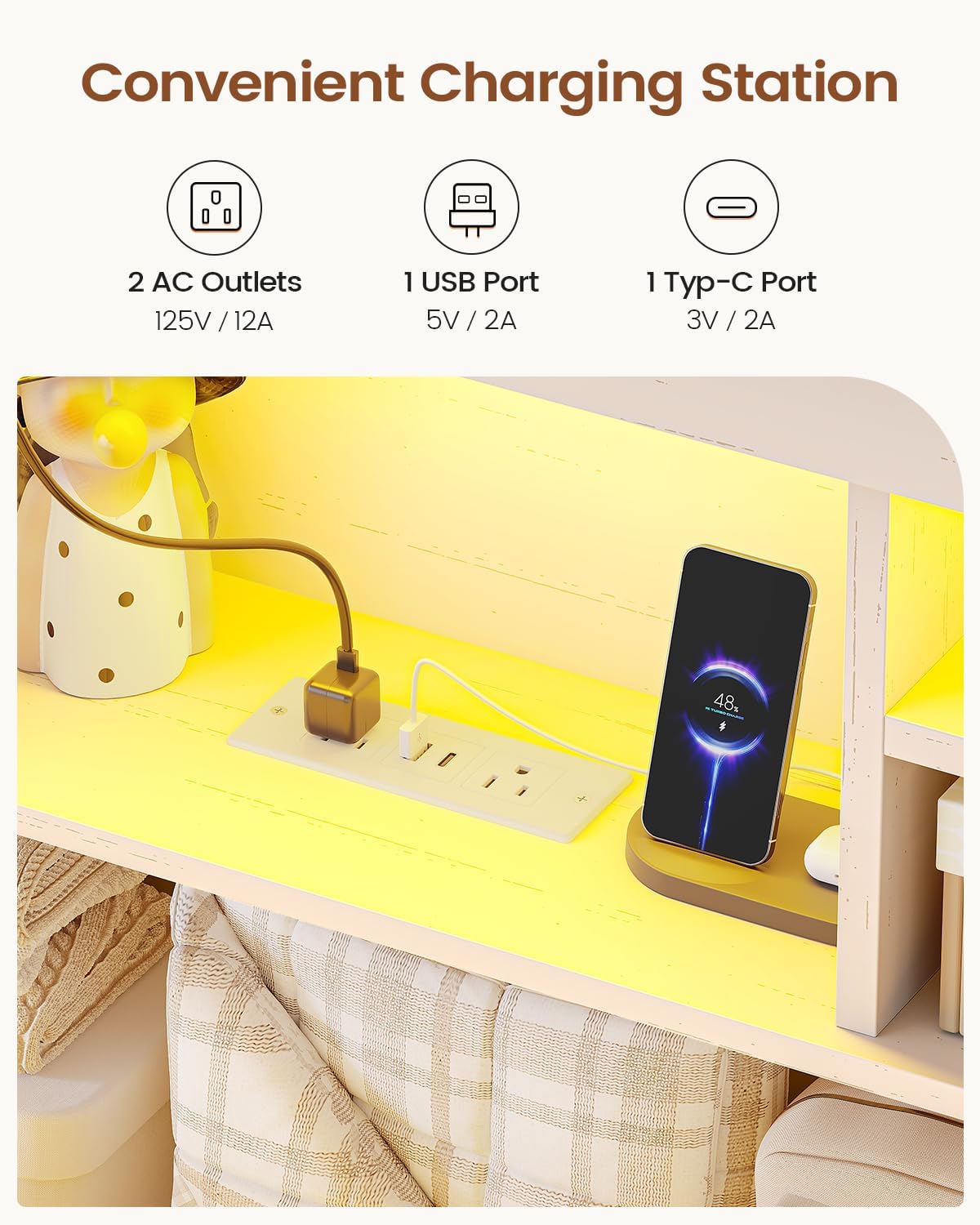 【Farmhouse Bed Frame with Charging Station and Led Lights】Farmhouse twin bed frames is equipped with built-in LED lights on the headboard. The led strips have over 60,000 colors to choose from, you can customize the color and flash mode as your wish to create your favorite bedroom atmosphere. Bedsides,The bulit-power strip (including 2 AC ports, 1 USB port, 1 Type-C port) make it easy to charge your electronic devices in bed without leaving your platform bed.