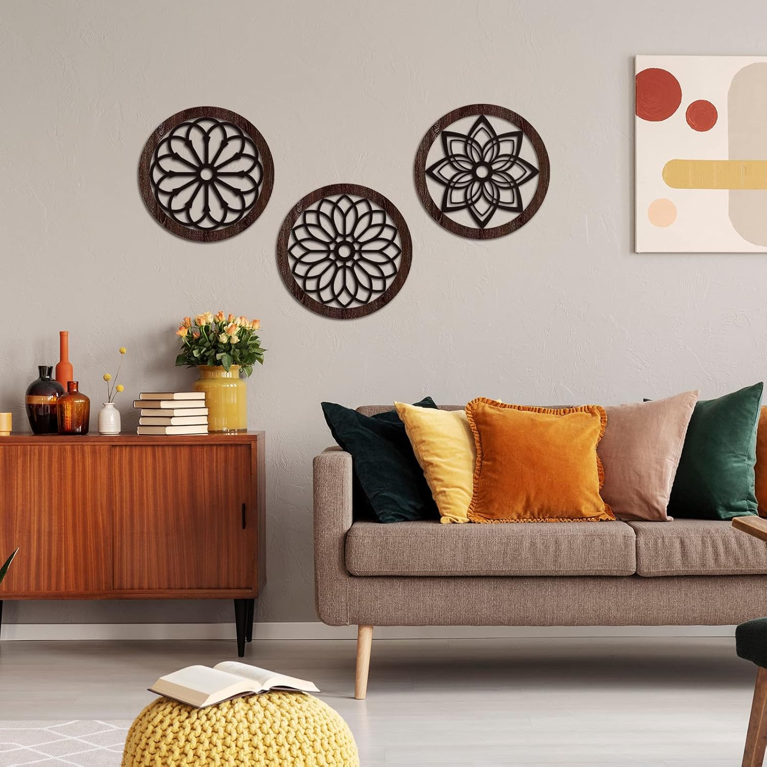 8 reviews for Blulu 3 Pcs Thickened Rustic Wood Wall Decor Rustic Wood Round Wall Art Farmhouse Hanging Decoration for Indoor Outdoor Living Room Bedroom Home Office Kitchen Decoration, 10 Inch(Round,Brown)