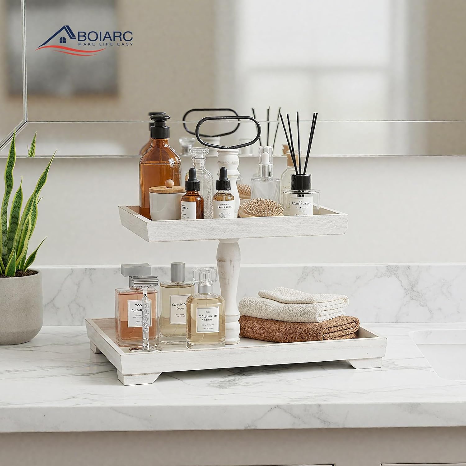 8 reviews for Boiarc Rustic Wooden 2 Tiered Tray Stand, Farmhouse Tiered Serving Tray Decor, Rectangle Wood Display Stands for Food Fruits Cupcake and Seasonal Festive Decorations (White)