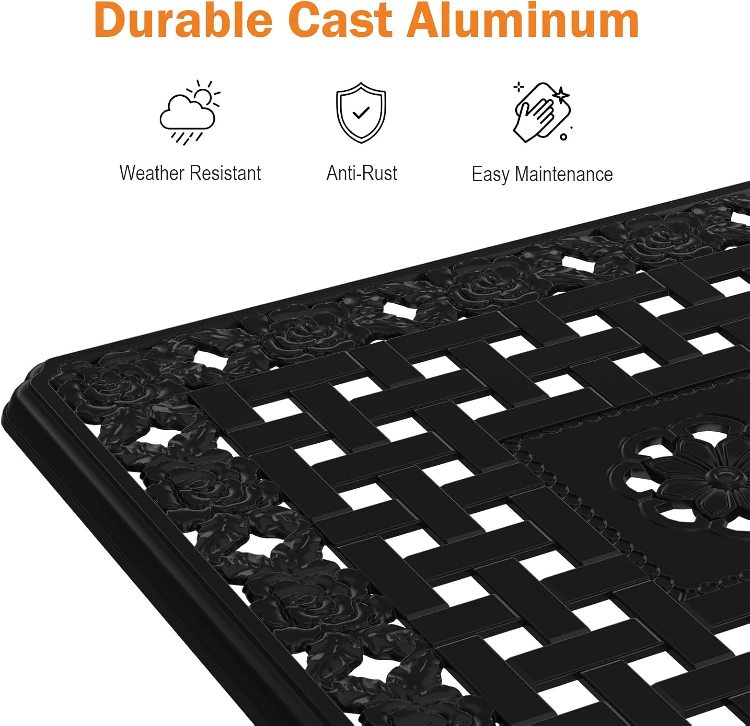 3 reviews for Cast Aluminum Outdoor Side Table, All Weather Square Bistro Table, Outdoor Coffee Table, Small End Table for Patio, Indoor, Lawn, Garden, Black