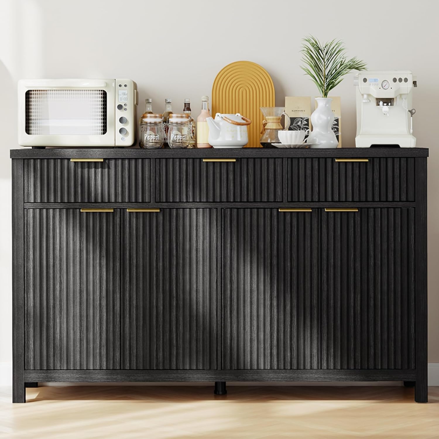 3 reviews for Concho Fluted Buffet Sideboard with Drawers, 55″ Morden Storage Cabinet Coffee Bar Cabinet with 4 Doors and 3 Drawers for Living Room,Hallway, Wood-Grained Black