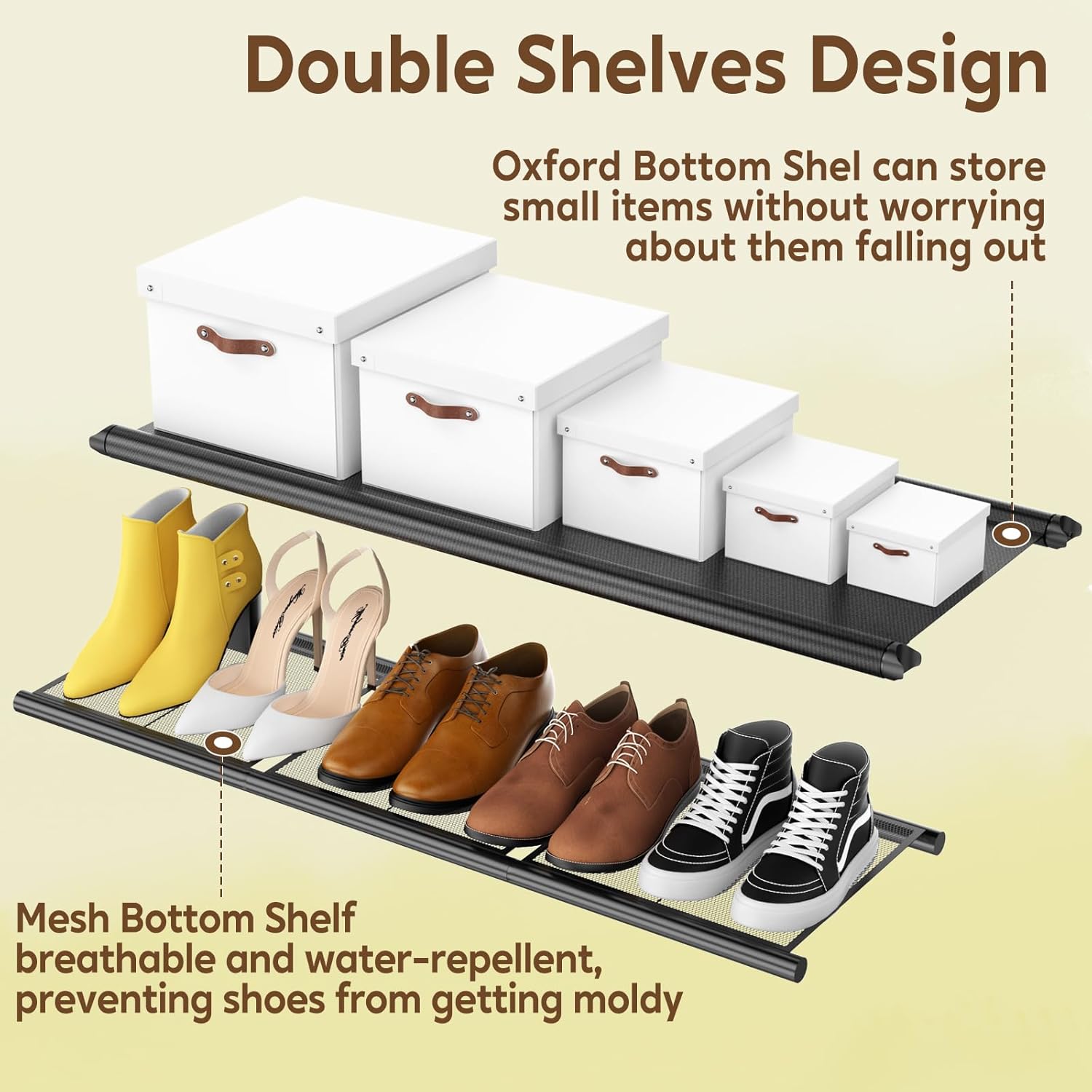 I had a lot of clothes just lying around on shelves in my garage, and this heavy-duty clothes rack really helped me get things organized. It’s very sturdy and stable, with plenty of space for hanging jackets, coats, and other items. The Oxford and mesh bottom shelves are perfect for storing shoes, boxes, or folded clothes. It was easy to assemble and looks great in my garage. I’m very happy with this purchase — now everything is neat and easy to find!