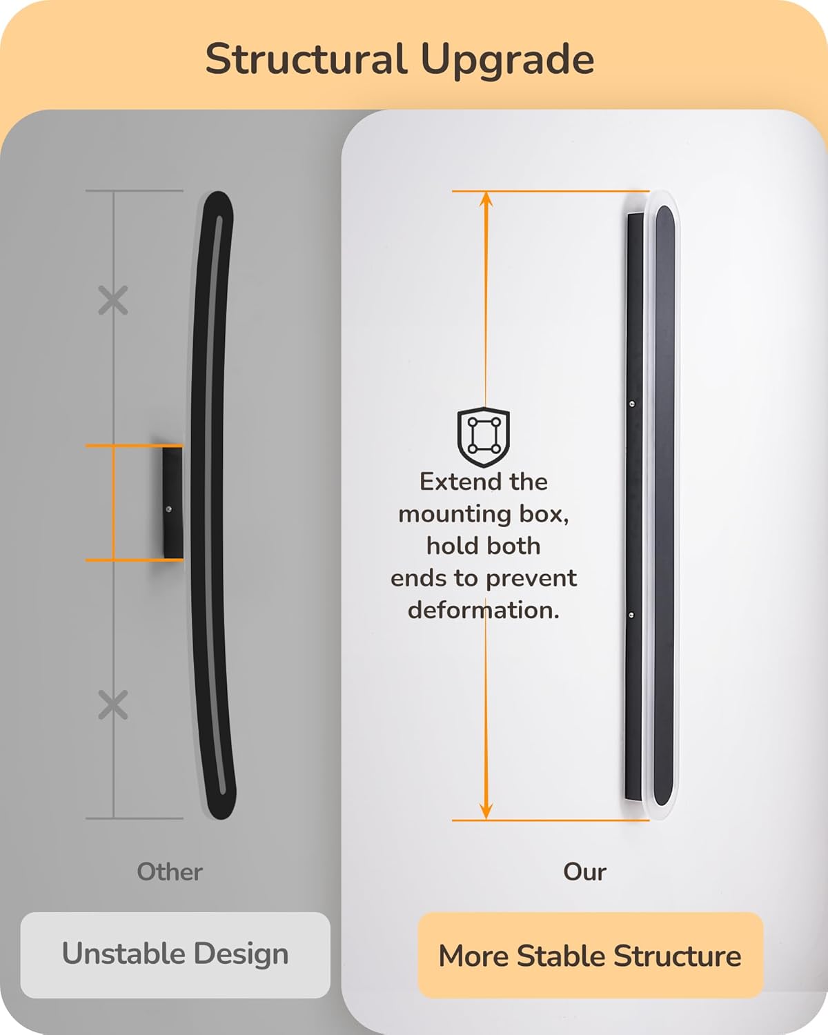 [Upgraded Structure & Minimalist Design] Installation box for our long exterior wall light features an advanced structure that not only increases its dimensions but also enhances structural stability; features a reinforced iron and acrylic body finished in sleek matte black; its clean, linear profile complements contemporary exteriors, ideal for porches, entryways, garages, and hallways.