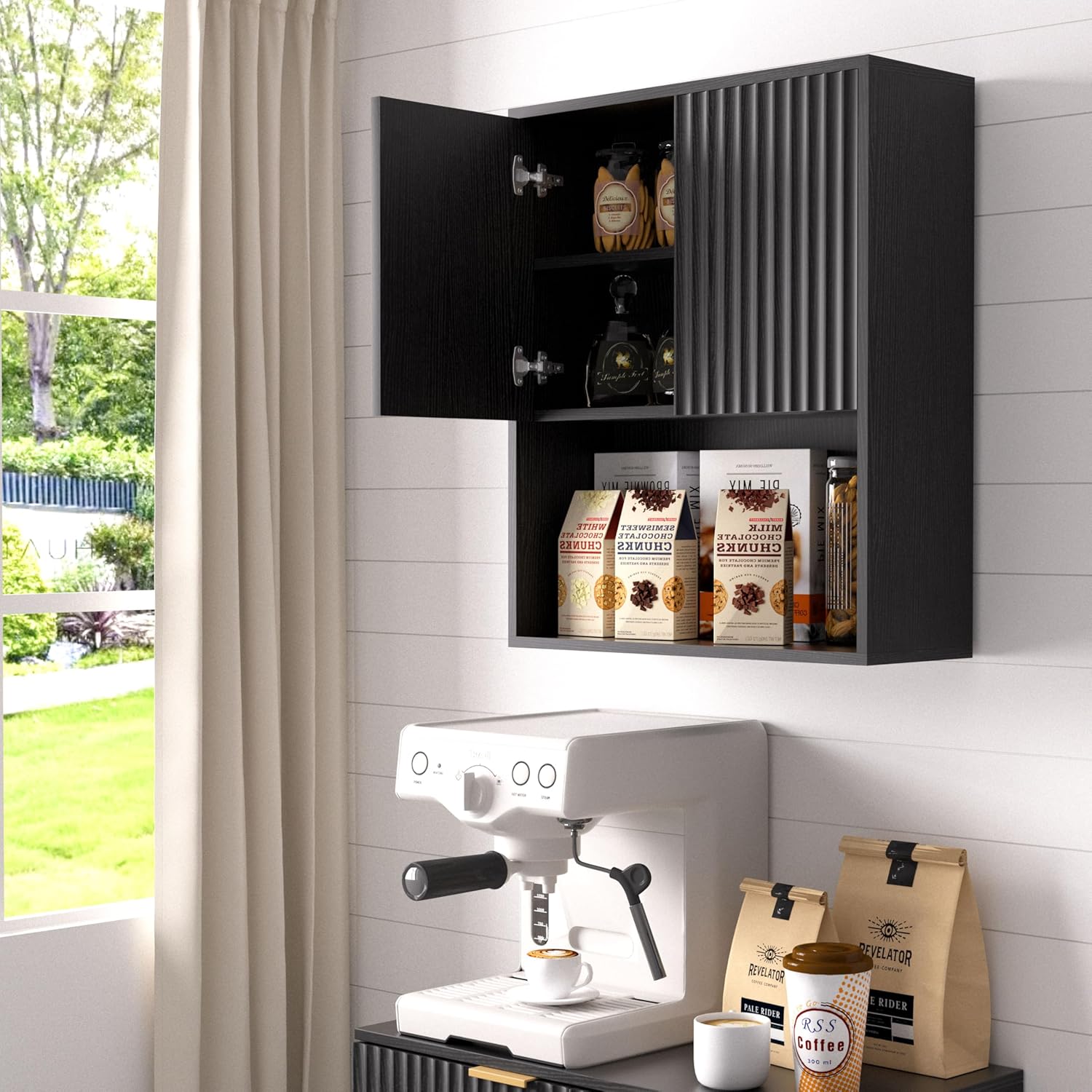 8 reviews for Fluted Bathroom Wall Cabinet Over The Toilet Storage,Wall Mounted Cabinet with Adjustable Shelf,Floating Cabinet Organizer Hanging Cabinet,Kitchen and Laundry Room Cabinets (Black, 1 PC)