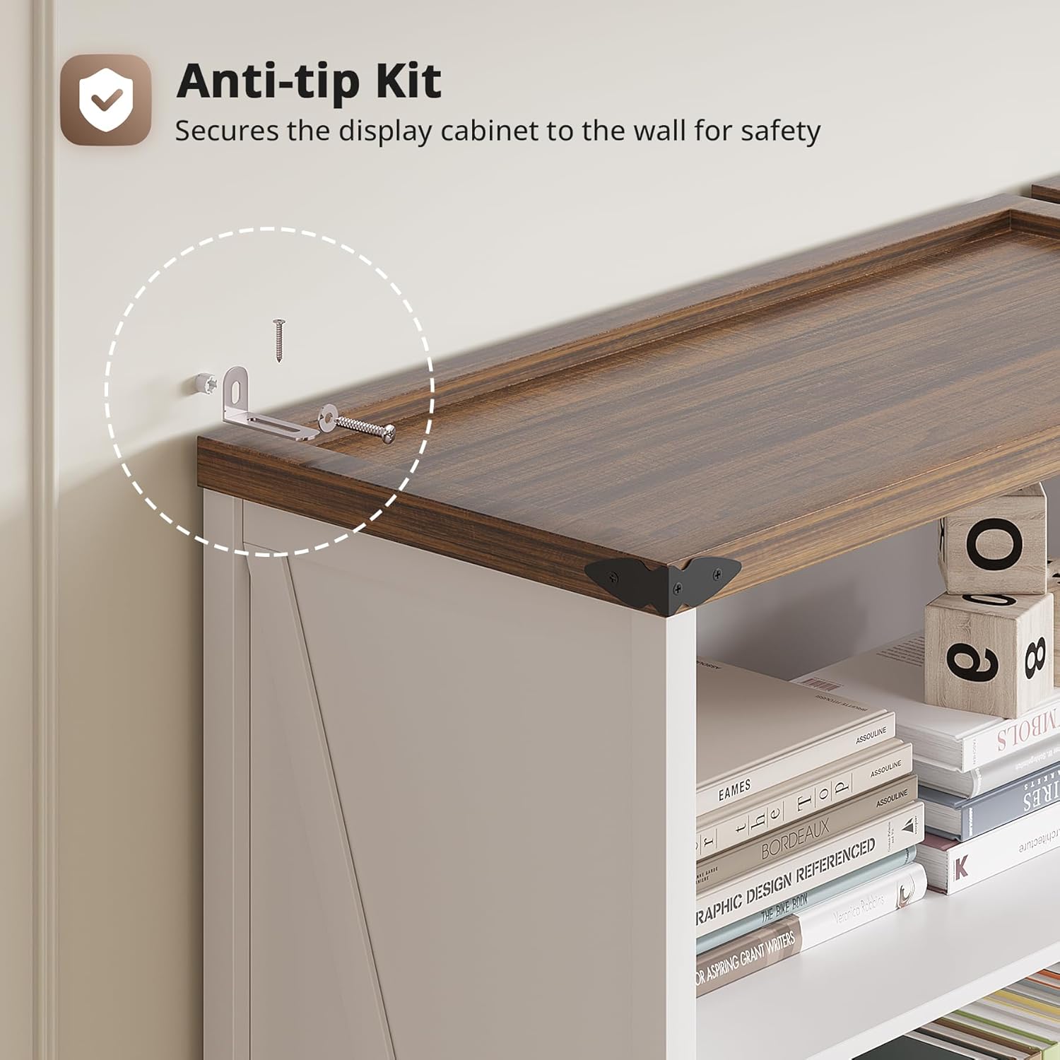 【Farmhouse Charm】Crafted with high-quality MDF wood and classic X-pattern barn doors, this bookshelf with cabinet features a durable structure and a rustic farmhouse look that complements vintage or country décor. Add warmth and timeless style to your living room, office, or bedroom while investing in long-lasting quality