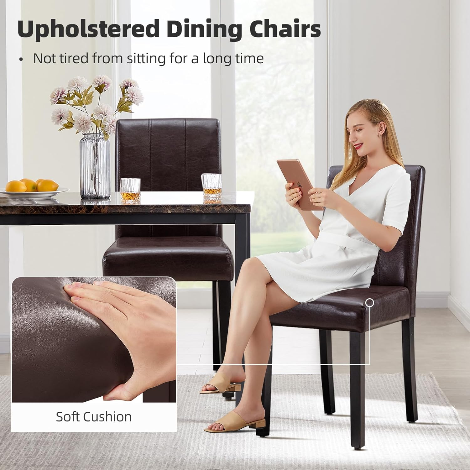 5 reviews for Leather Dining Chairs Set of 4,Solid Wood Kitchen Chairs Modern Parson Design Chairs for Dining Table,Small Kitchen Dining Room,Upholstered & Waterproof (Brown)