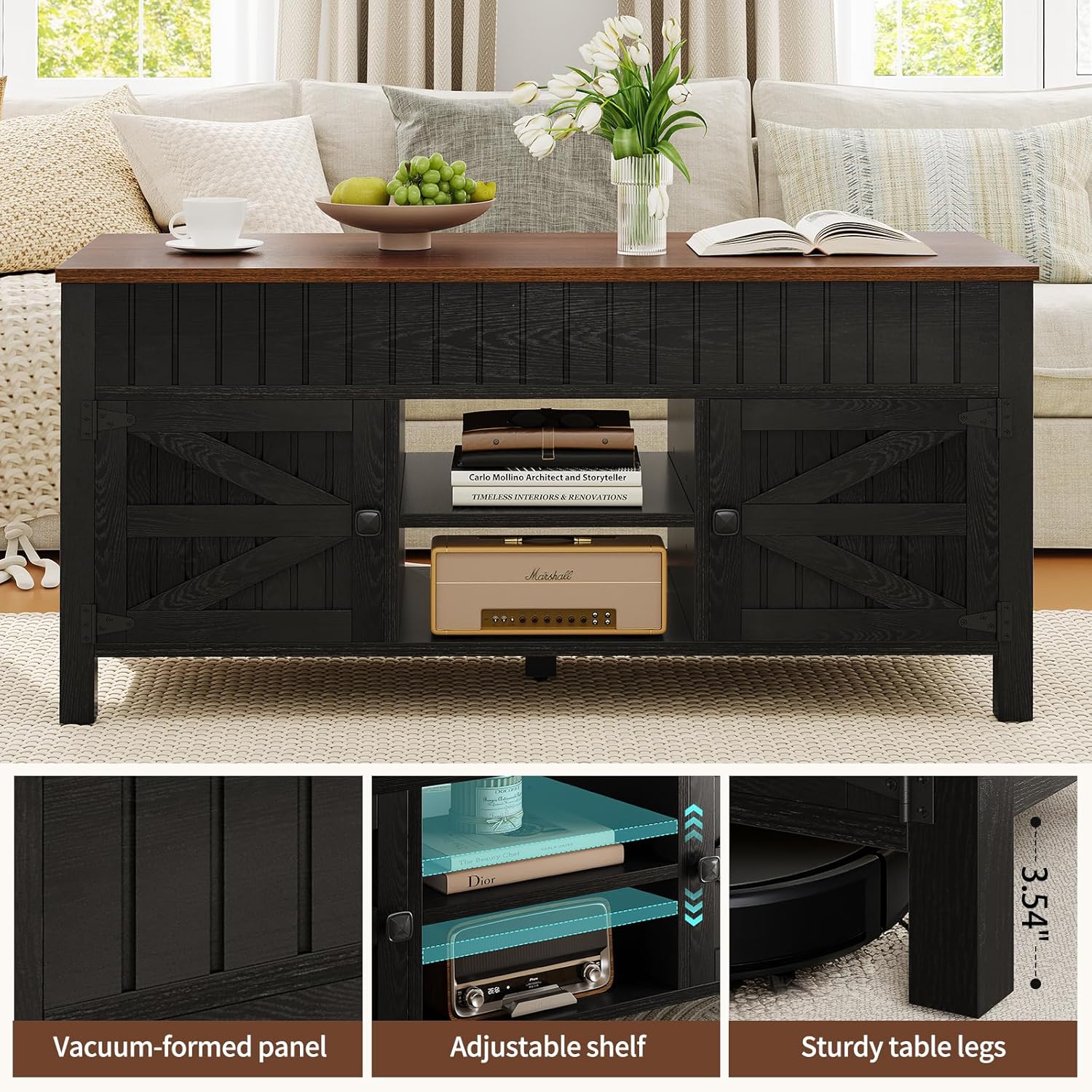 8 reviews for Lift Top Coffee Table with Storage – Black Coffee Tables for Living Room, Farmhouse Wood Center Table, Large Rectangle Middle Tables with Hidden Compartment & Adjustable Shelf