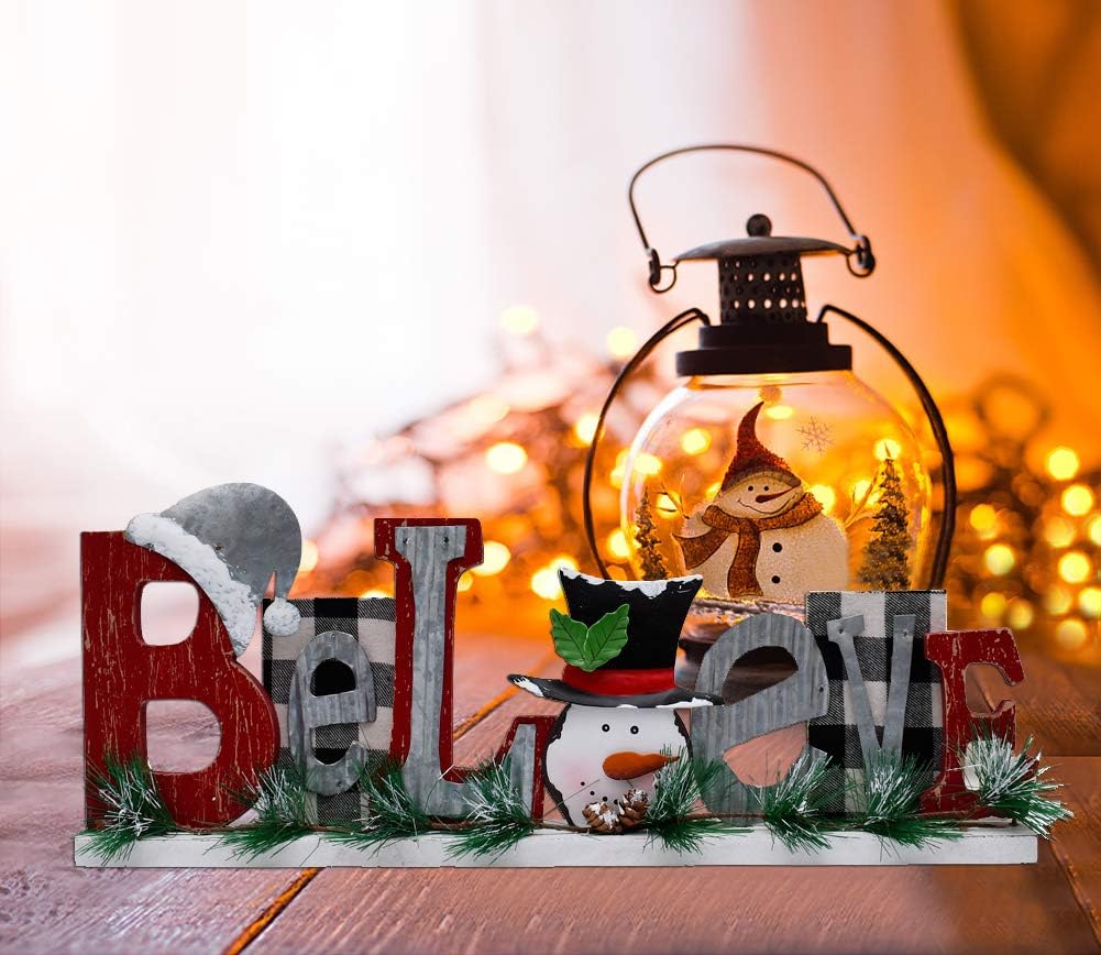 Believe Word Sign Snowman Table Signs Decor Christmas Home Decor