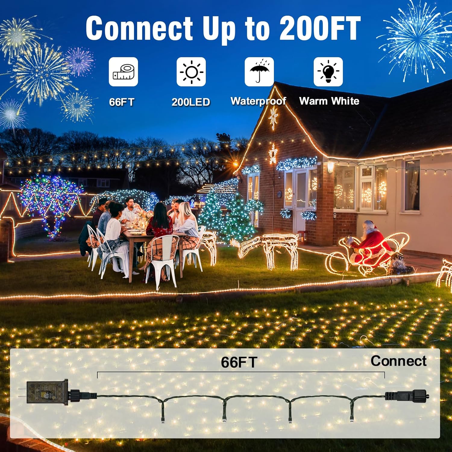 8 reviews for Nisocy 200 LED Christmas Connectable String Lights Outdoor Waterproof – Warm White Fairy Lights with Plug, Tree Lights for Patio, Garden, Bedroom, Wedding, Party, Decor (66FT)