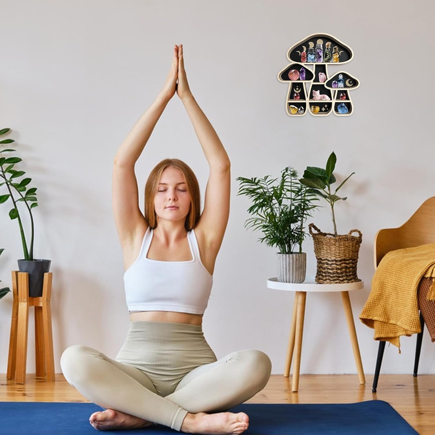 🍄 Ample Storage Space: Measuring 11.1 inches * 11.8 inches, with multiple tiers and compartments, this shelf offers generous space to organize your crystals, gemstones, small plants, or decorative items. Whether you have a large collection of crystals or just a few special pieces, the various-sized slots can accommodate them all. You can neatly display your treasures while keeping them easily accessible.