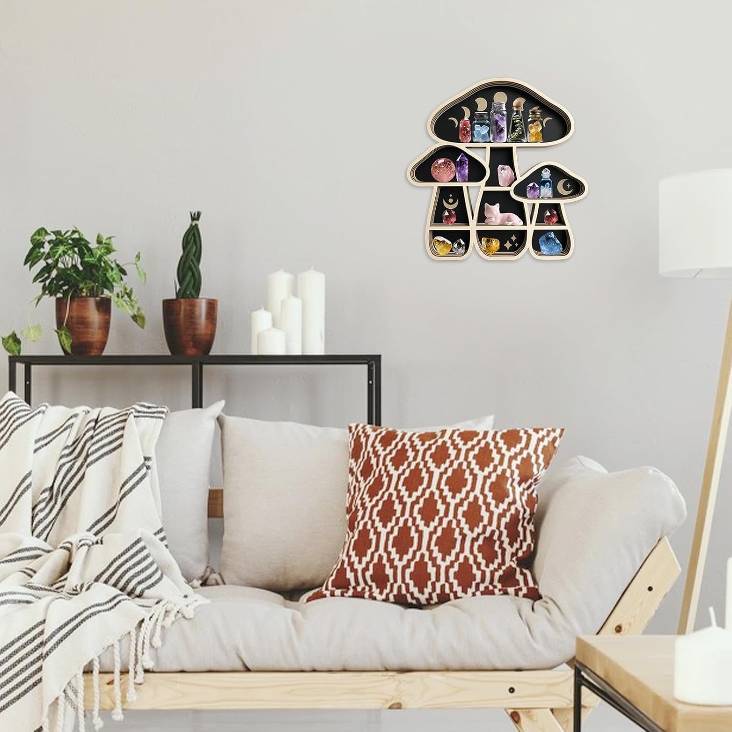 🍄Versatile Decor Element: The neutral color scheme and bohemian – inspired design make it a versatile addition to any decor style. It fits seamlessly into bohemian, witchy, or modern minimalist interiors. Place it in your bedroom, living room, meditation area, or even a study room to instantly elevate the aesthetic and create a cozy, mystical atmosphere.