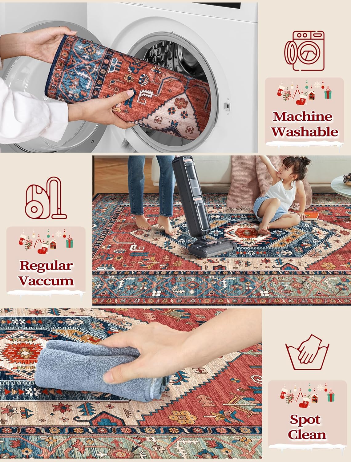 ❤️【Machine Washable Rug】 For daily upkeep, a quick sweep or wipe is all it takes. For deeper cleaning, simply machine wash with cold water, avoiding bleach to preserve its hues. 👉Note: To smooth out shipping creases, roll the rug in the reverse direction, allowing the creases to relax within a week.