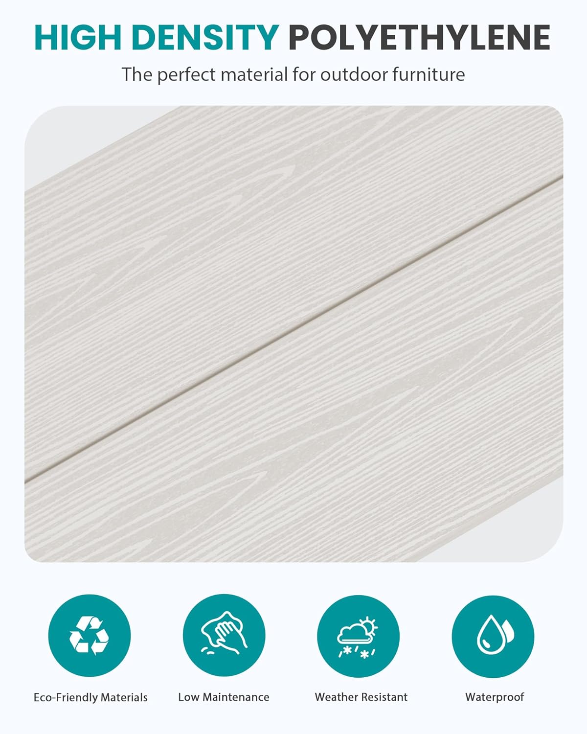 Never Fade: The color of this outdoor long bench is intrinsic to its HDPE material, with no paint used. This means it contains no harmful substances like methane and will never fade, rot, or crack. Its high weather resistance ensures it remains a long-lasting addition to your garden for years to come.