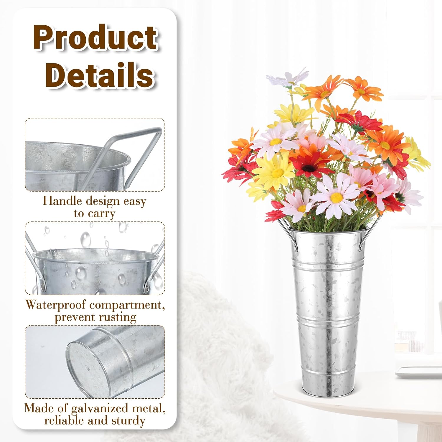 【Vintage Charm】These flower buckets for flower bar feature a vintage design. Galvanized buckets are sure to be eye-catching decorative accents, flower bar supplies, adding sparkle to any indoor or outdoor space, weddings, office, or holiday party.