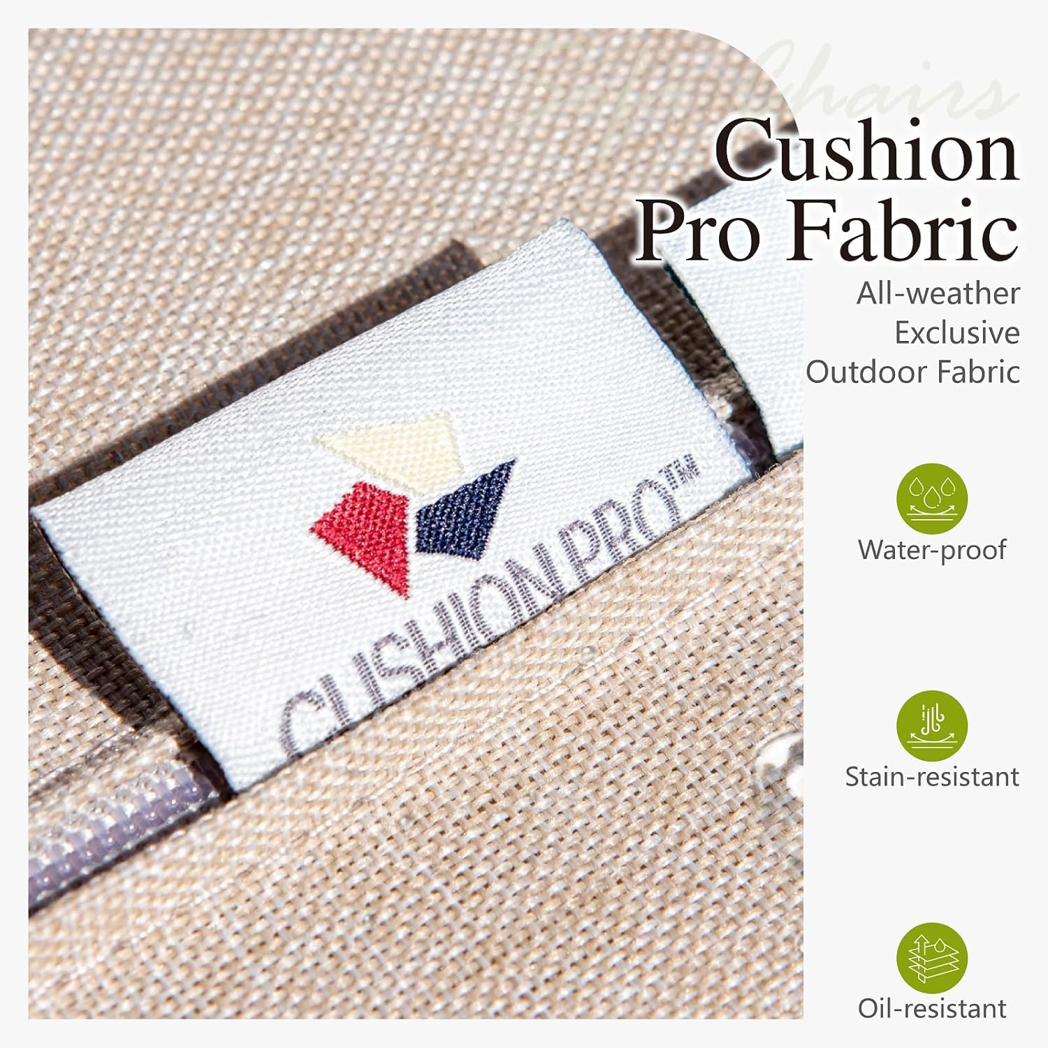 cushion made of CUSHION PRO fabric which has excellent water-repellent, soil-release, and stain-resistant properties