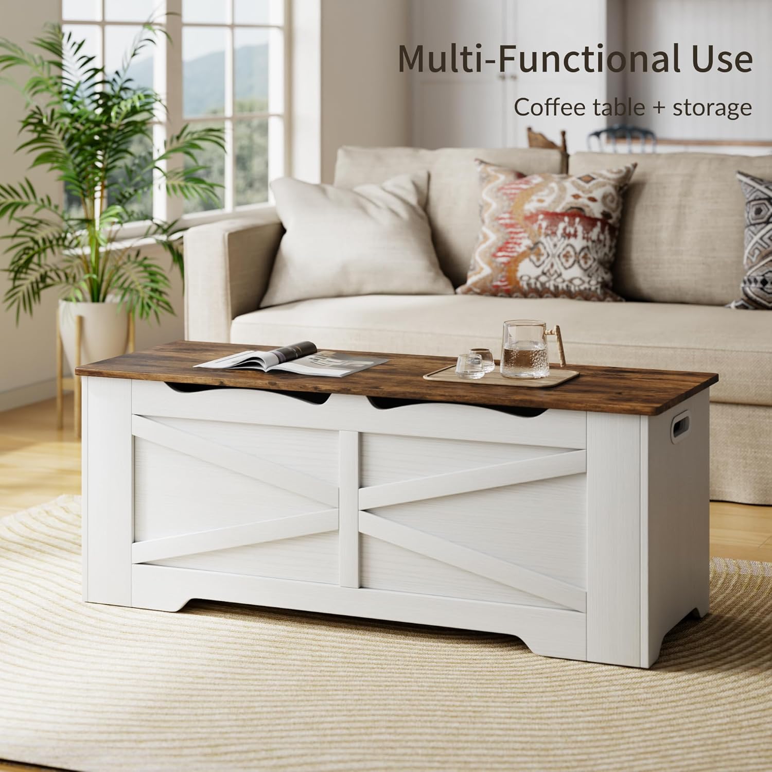 2 reviews for Storage Trunk, 47.2″ Large Storage Bench for Bedroom, Lift Top Storage Chest, 300lbs Capacity Engineered Wood Entryway Bench with Storage, 2 Hinges for Living Room Hallway, White & Walnut