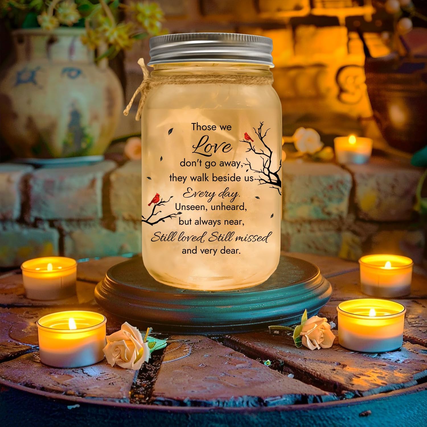 8 reviews for Those We Love Don’t Go Away, Memorial Gifts for Loss Of Mom, Dad Son Husband, Bereavement Gift Idea Memory Lamps Sympathy Memory Gifts for Loss Loved Ones Red Cardinal In Loving Memory Mason Jar Light