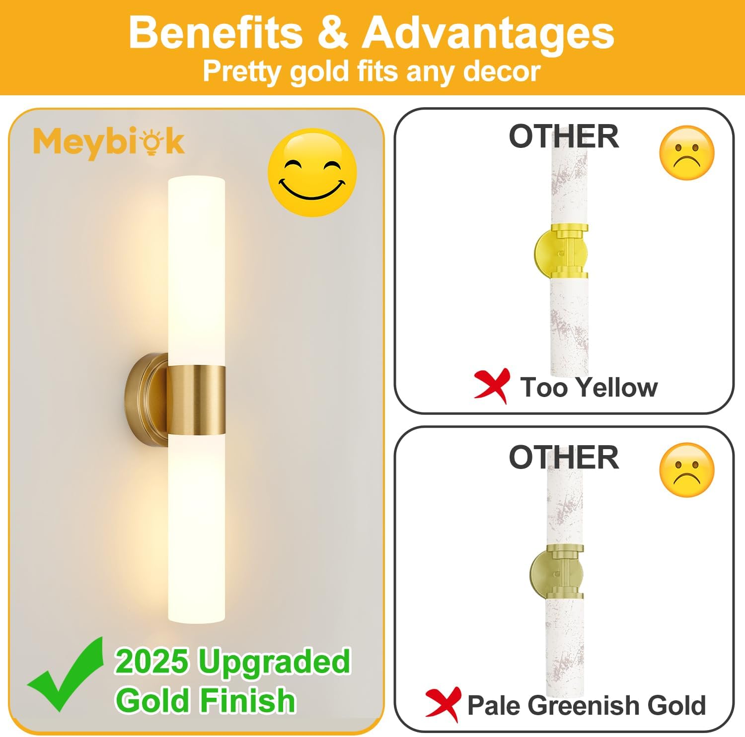 8 reviews for Wall Sconces Set of Two, Modern Bathroom Sconces Wall Lighting with Milky White Glass, Brushed Gold Sconces Wall Decor Set of 2 for Bathroom Mirror Bedroom Living Room Hallway