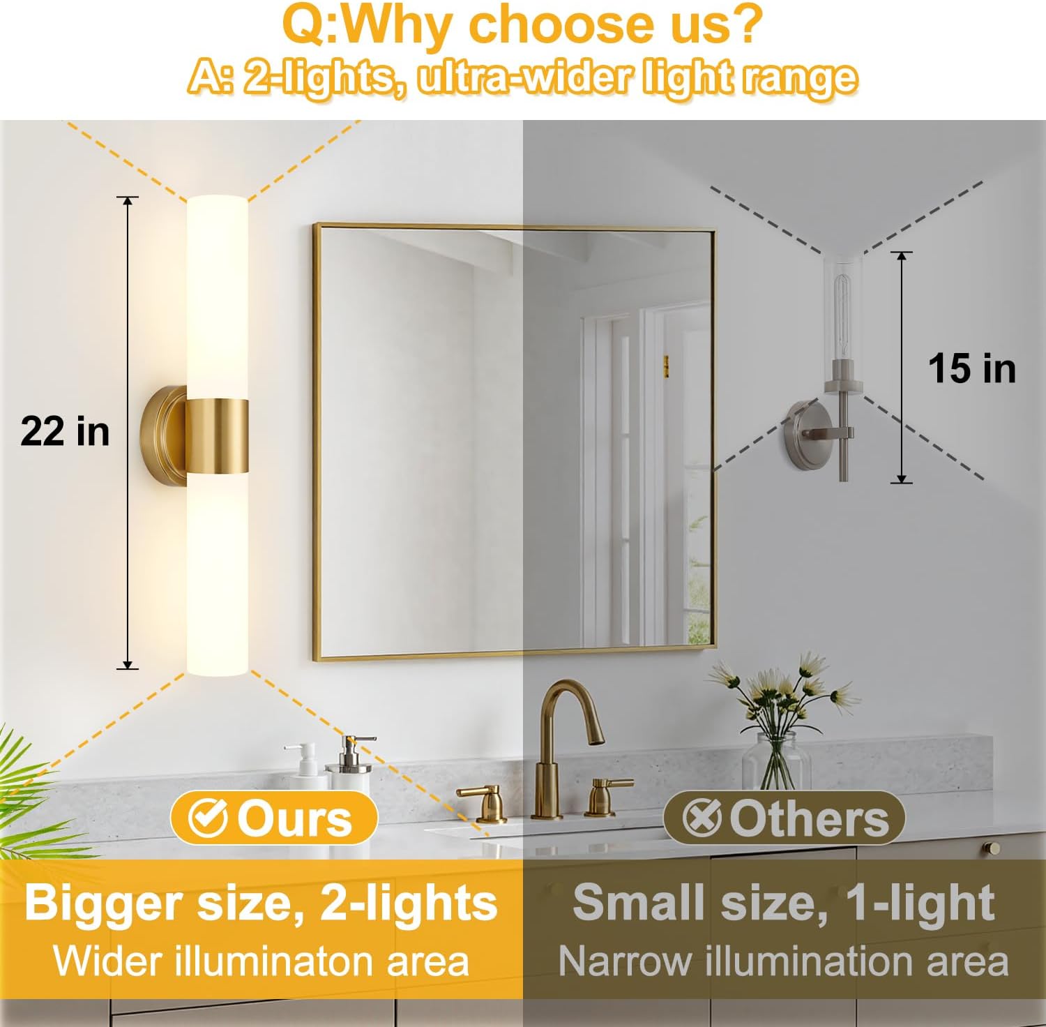 【36-Month Warranty】 With our commitment to 100% after-sales service, we offer a comprehensive 36-month warranty, providing support and replacements if any issues arise within 3 years. If you experience any issues with our bathroom light fixtures, please contact us through the Amazon message box, and we will respond within 24 hours.