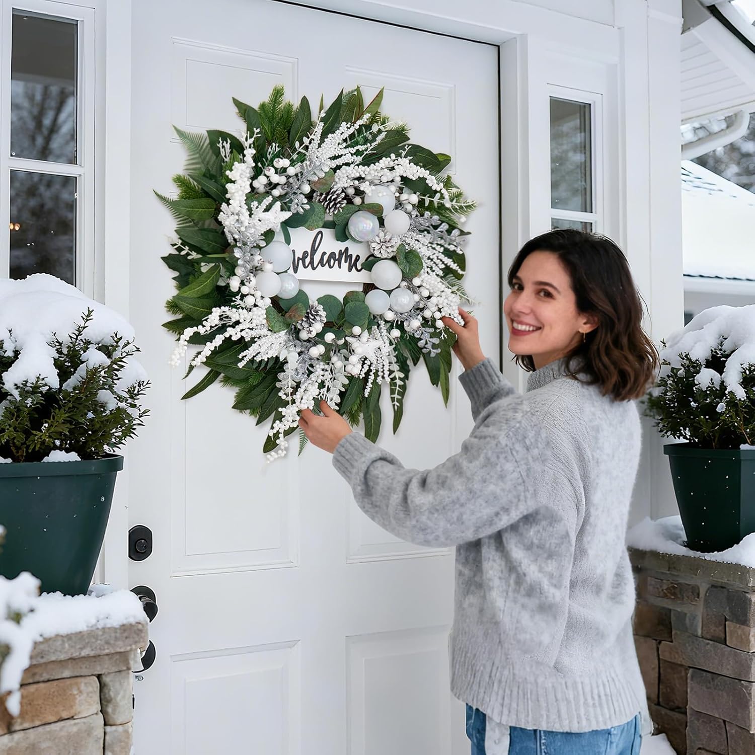 2️⃣ Perfect 24-Inch Winter Wreath Size 🏠 This 24-inch winter wreath fits perfectly on front doors, windows, fireplace mantels, entryways, porches, or walls, making it a versatile indoor or outdoor winter décor piece.