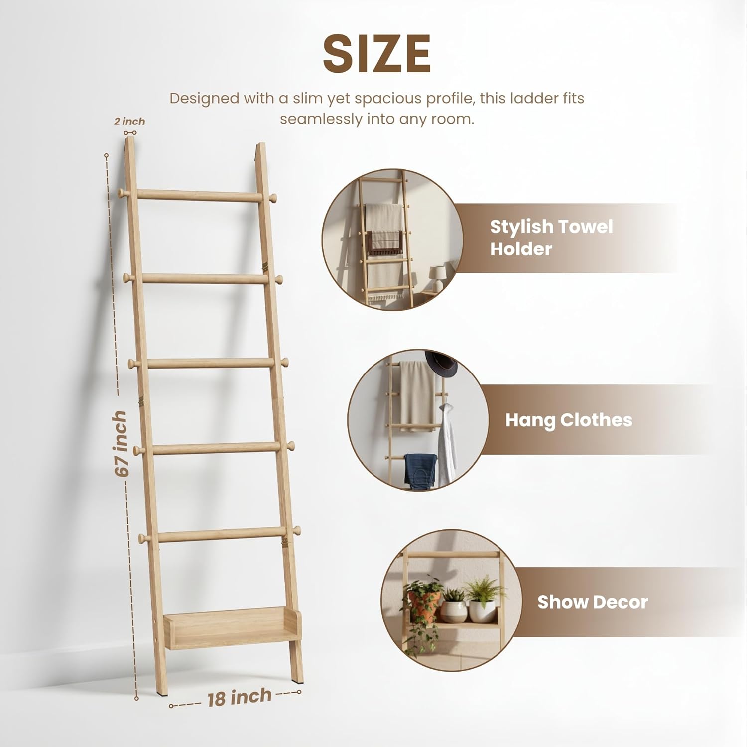8 reviews for Wooden Blanket Ladder for Living Room & Bedroom, 6-Tier Rustic Decorative Farmhouse Style Quilt Rack with Side Hooks, Wall Leaning Ladder Shelf for Bathroom with Bottom Display Storage, Natural